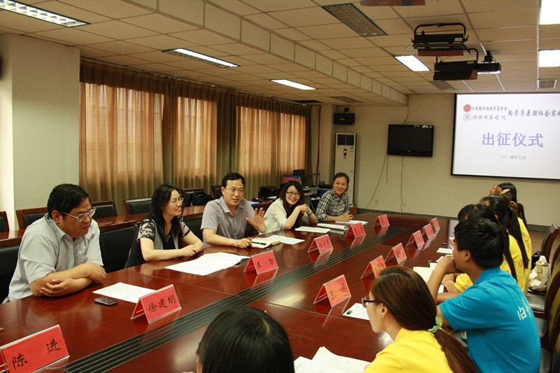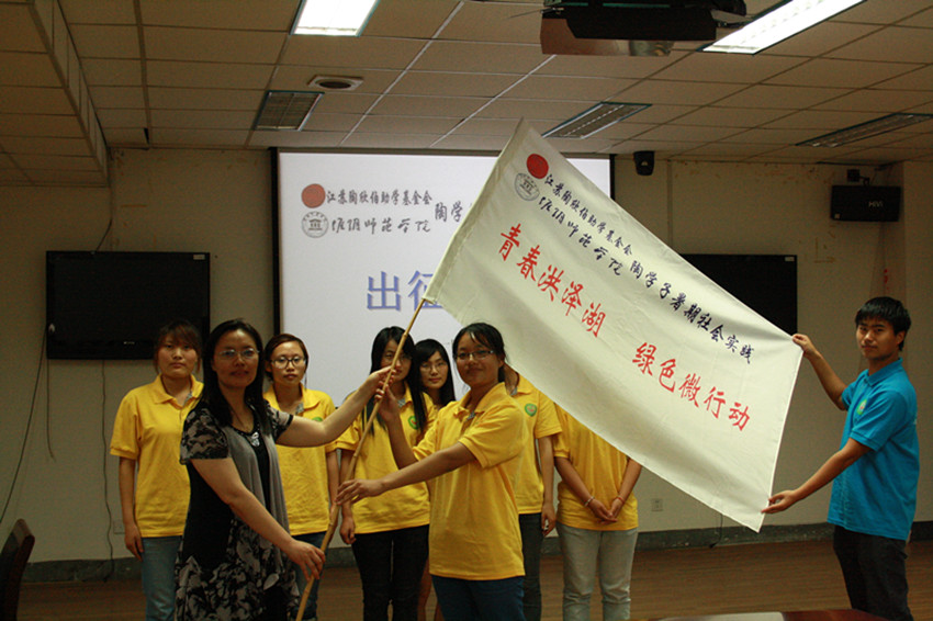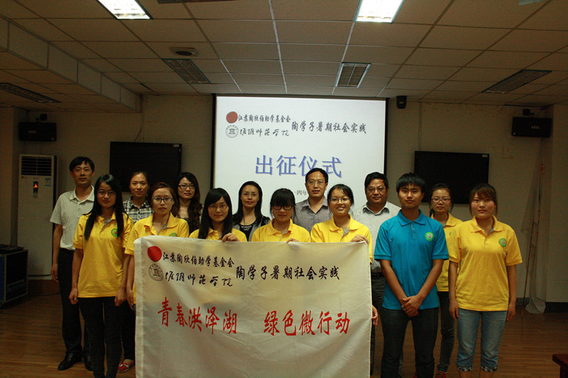 在副书记陈进的主持下,本次仪式有序开展。首先,本次暑期社会实践活动的指导老师徐建明详细介绍了本次实践的3个方面主要内容,即在淮安张集、岔河、泗洪和盱眙4县开展“青春洪泽湖 绿色微行动”水环境现状调查,检测湖水的pH,并向当地农民宣传生态技术。经过介绍,大家更深入了解本次活动。同时,徐老师强调陶学子要不怕吃苦,积极投入到本次调研活动。紧接着,副部长王智对陶学子真诚地提出了2个想法和2个注意问题。2个想法就是陶欣伯助学基金会慷慨资助了生科院陶学子的暑期社会实践活动,陶学子一定要珍惜并把握这次来之不易的机会,以及在实践中陶学子要及时总结成果和心得。2个注意问题就是要注意合理使用经费、积极参加实践,同时要注意安全问题。之后,任书记说明怎么写好调查报告,并寄予3点希望,即希望陶学子充分利用去农村调研的机会,增长个人才干;希望陶学子了解群众、帮助群众,学习如何待人接物;希望陶学子不忘感恩社会、服务社会。