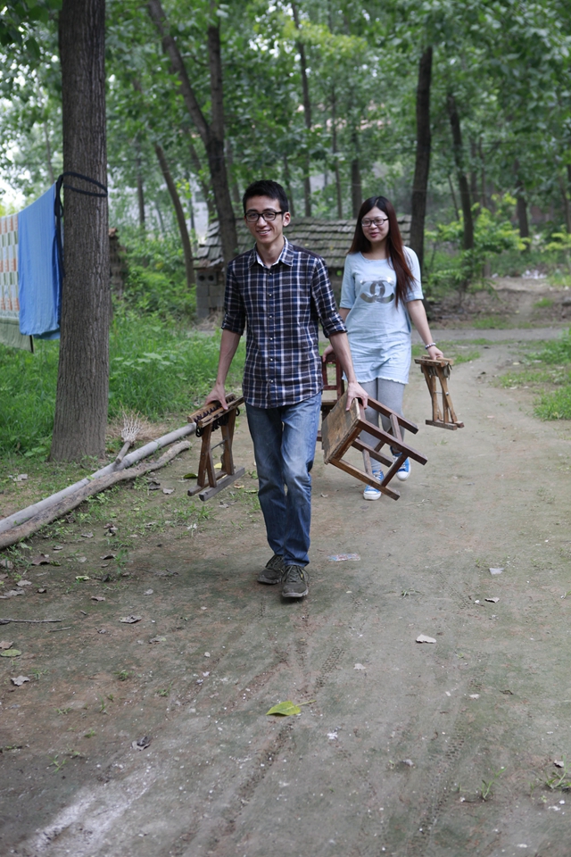 由于家里的椅子不够,开饭前夕同学们去邻居家借椅子。