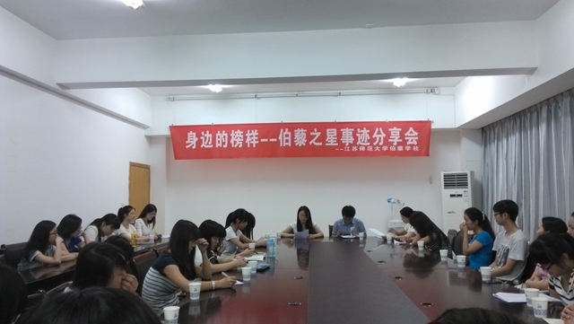 为宣扬我校伯藜学社优秀陶学子艰苦奋斗的精神、在学社内传播乐观积极的生活态度,帮助所有陶学子找到自己身边的榜样,汲取充满青春奋斗的正能量,6月13日晚18:30,江苏师范大学伯藜学社学习部于科文5号楼316会议室举办“伯藜之星”吴巧艳同学优秀事迹分享会,伯藜学社泉山校区全体大一学生及主要社团干部参加分享会。
