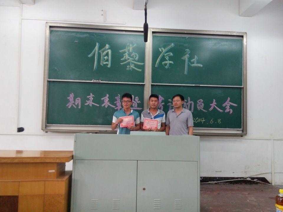 2014年6月8日下午,江苏科技大学伯藜学社在西综118召开2013—2014学年期末表彰暨考试动员大会。此次大会社长许伟主持,指导老师郭峰出席此次大会并作指导。