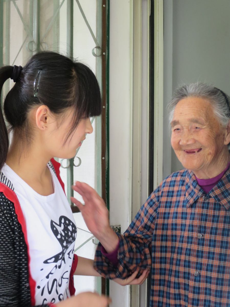 因为我们不是第一次来,所以刚抵达敬老院后陶学子们就熟悉的进入到爷爷奶奶们的房间里有的陪他们聊天,有的帮助爷爷奶奶们整理衣服,还有的帮助爷爷奶奶们剪指甲。之后陶学子们将爷爷奶奶邀请到院子里去观看我们精心准备的节目。首先为爷爷奶奶们带去的是音乐照顾,音乐照顾可以帮助爷爷奶奶们活动手脚,舒化身心。为爷爷奶奶们和我们的互动打下良好的基础。紧接着就是陶学子为爷爷奶奶们精心准备的红歌—红星闪闪。这首歌一开唱爷爷奶奶们就和我们一起打着节拍唱了起来,爷爷奶奶们一边唱一边脸上露出追忆的表情,仿佛他们又回到了年轻的时候。随后陶学子们又为爷爷奶奶们送去了一首经典老歌-窗外。最后一个节目是由张俊飞学姐为爷爷奶奶们带来的太极拳表演。学姐的精彩表演获得了阵阵掌声,结束后有几位爷爷奶奶把学姐拉到一边进行了“拜师学艺”。活动全部结束后大家细心的将爷爷奶奶们送回房间。最后大家在一起拍照留恋。