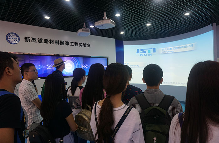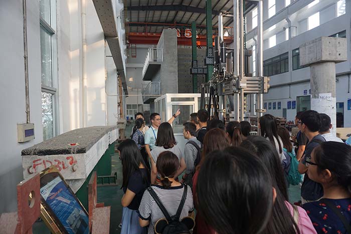 接着,薛经理带领陶学子们前往参观集团的两大过国家级科研平台,即新型道路材料国家工程实验室与在役长大桥梁安全与健康国家重点实验室。学习相关专业的陶学子表现出了浓厚的兴趣,在观赏的同时积极与实验室内的员工交流,收获来自企业一线科研人员的宝贵经验。
