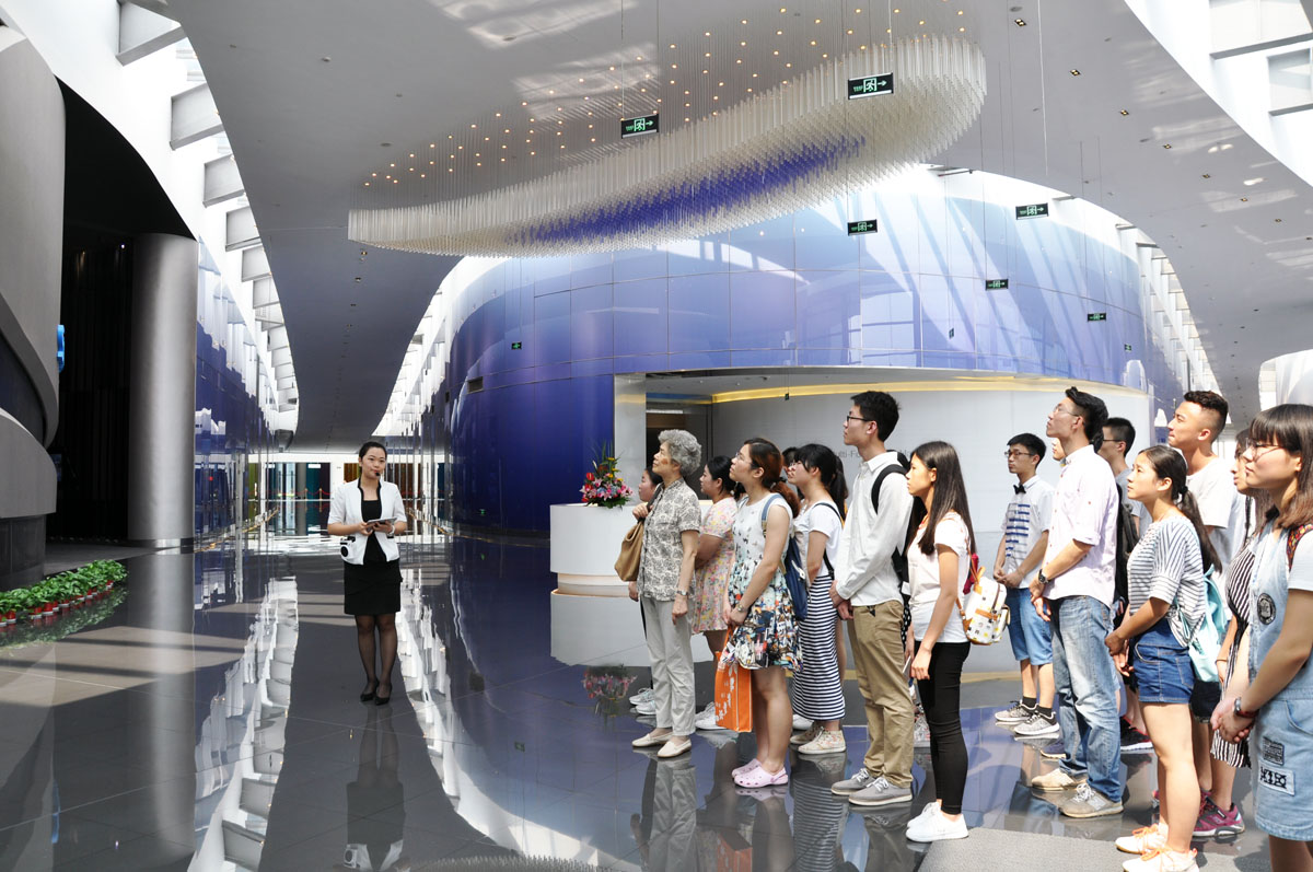 在苏宁云商的工作人员全程陪同下,基金会一行参观了该公司总部园区以及各类展厅,了解和学习该公司的概况、发展历程、网络规划、企业荣誉、企业文化、党团建设等,体验苏宁超市、智能家居互联网家庭、物流自提等大数据与云计算的运用。参访过程中,陶学子不时的根据所见所闻提出自己的问题和思考,工作人员都一一进行解答。部分展厅还设有互动设施,先进的智能科技体验也让陶学子们大开眼界。