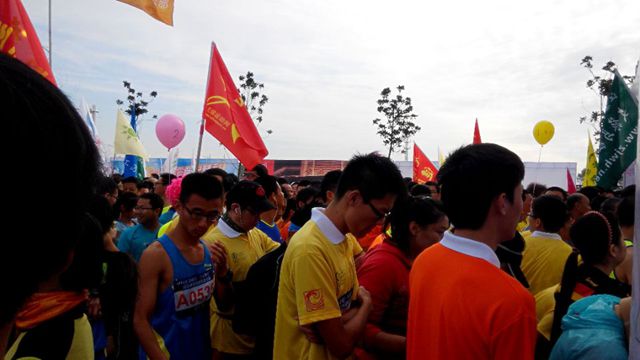 11月9日清晨6:30,由江大伯藜学社陶学子和部分勤工助学中心的同学组成的志愿者团队整齐地在校中门列队集合。随着校车缓缓地发动,志愿者们也开启了他们一天的 “旅行”!在顺利到达比赛场地——美丽的金山湖畔之后,志愿者们进行了简单的休息调整,接着隆重的现场开幕式过后,随着裁判发令枪声的响起,镇江“农业银行杯”半程马拉松国际邀请赛正式开始!与此同时,江大志愿者们也开始了他们的忙碌。
