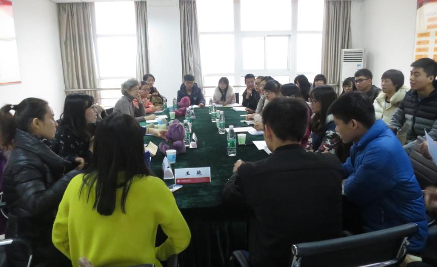首先展开的是基金会领导与校领导工作座谈会,先由我校校领导致辞,再由基金会秘书长张利伟发言,双方就伯藜学社的相关工作交换了意见以及建议。接着是基金会老师们与2015级陶学子的见面座谈会,先由施莎莎老师介绍了各位出席会议的老师,再由丁琦老师向在座的陶学子介绍了基金会的基本信息,简单讲述了陶欣伯爷爷的人生经历,介绍了基金会的政策与给陶学子带来的帮助。然后是各位老师与陶学子们的互动时间,老师们像亲人一样亲切地与陶学子们交谈着,鼓励同学们多参加活动,多组织与兄弟院校的联谊活动,丁琦老师也提到了明年“十百千”的盛世,陶学子们都跃跃欲试。