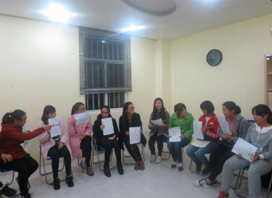 首先,胡琳琳老师先以一个破冰游戏“大风吹”作为开场活动,同学们很快进入角色。接着胡老师给大家发了白纸和彩笔,让陶学子绘出一幅能代表自己的画并向大家展示介绍,大家依次介绍了自己的画作,并告诉其他人自己的艺名。为了让大家更快记住彼此,胡老师利用击鼓传花的小游戏进行了测试,接到花的同学也依次说出了其他人的名字。随后,胡老师让大家一起为这个小团体想一个大家都要遵守的契约,同学们道出“彼此信任,互相尊重,严守秘密”的期许,言明“团结友爱,互相体谅,共同成长”的心愿。最后,在场的陶学子都说出了自己在学习,生活上的困惑,胡老师认真的倾听、记录,针对一些问题做出分析。临近活动尾声,胡老师根据大家举手表决的情况确定了下一次的话题。