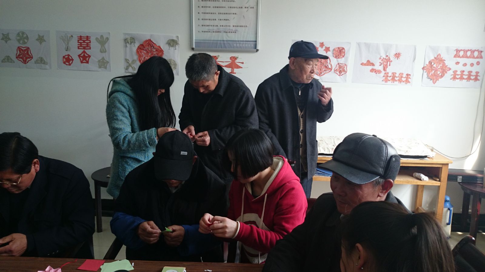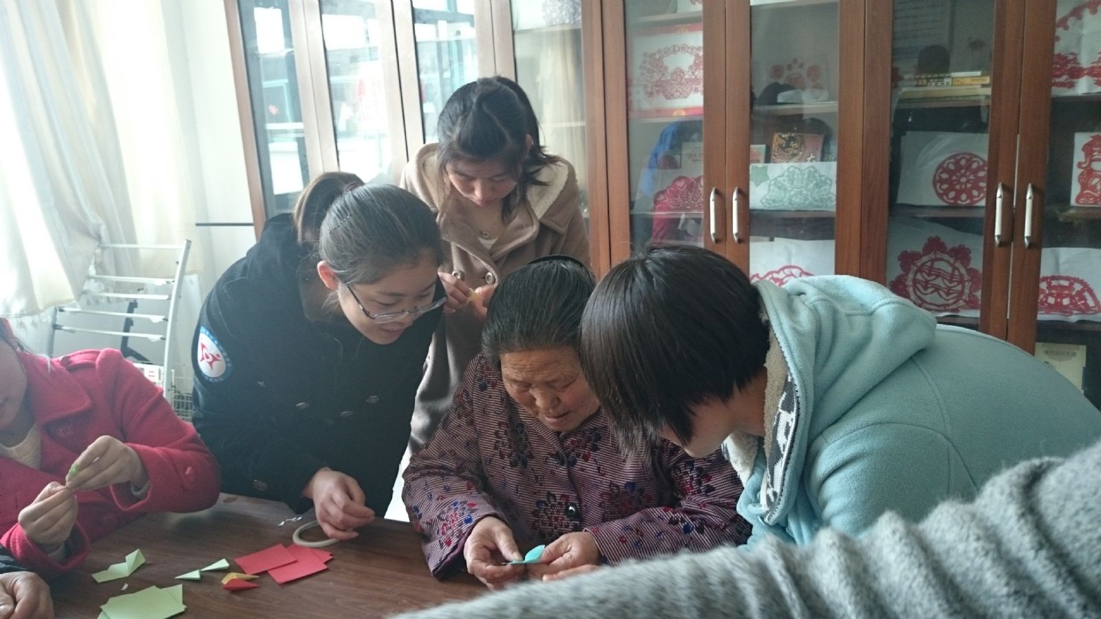 下午两点左右,伯藜学社的陶学子们怀着激动的心情到达了秣陵街道敬老院,在热情院长的带领下,陶学子们来到了一间展览着各色漂亮剪纸的手工教室。在院长的安排下,爷爷奶奶陆续来到了手工教室,也随着他们的到来,手工教学活动正式拉开帷幕。