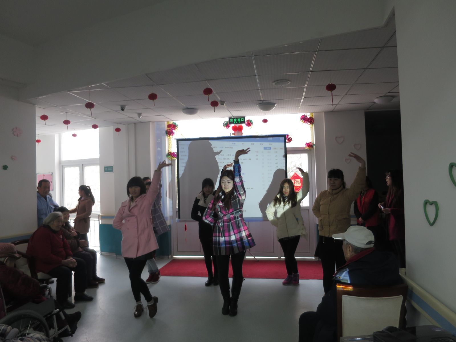 十点左右,陶学子为爷爷奶奶们表演了自己精心准备的节目,《燃烧的蔬菜》,《玉生烟》等舞蹈都获得了爷爷奶奶们热烈的掌声。他们也在我们的歌舞中活跃起来,仿佛回到了年轻时代。爷爷奶奶们不禁唱起了自己拿手的歌曲,两个时代的气息相互交融着,构成一幅美丽的画面,我们情不自禁地为爷爷奶奶们高亢的歌声鼓掌。