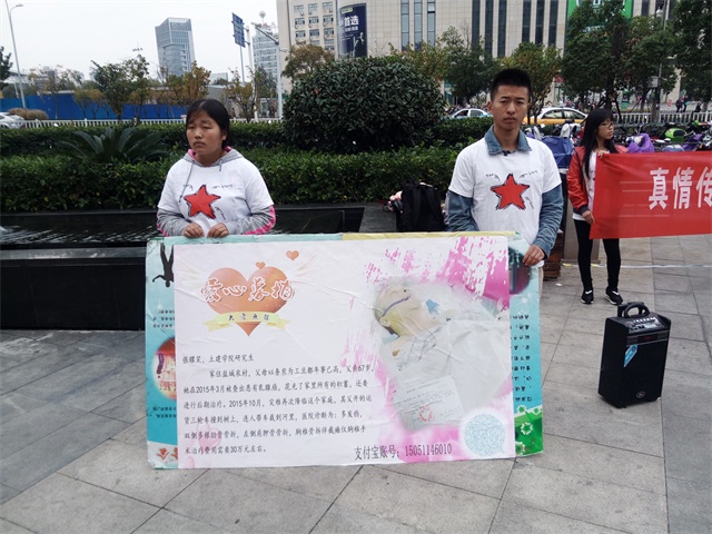 张耀笑,女,江苏科技大学14级在读研究生,2015年3月12日在江苏大学附属医院检查,被告知患乳腺癌。天有不测风云,人有祸兮旦福,之后的几个月,经过8次化疗的她在10月16日被告知父亲在家乡遭遇车祸,诊断为:多发伤,双侧多根肋骨骨折,左侧液气胸,双肺挫伤,背部皮下积气,上纵隔积液,左侧肩胛骨骨折,胸椎骨折伴截瘫,目前已经住进重症监护室。