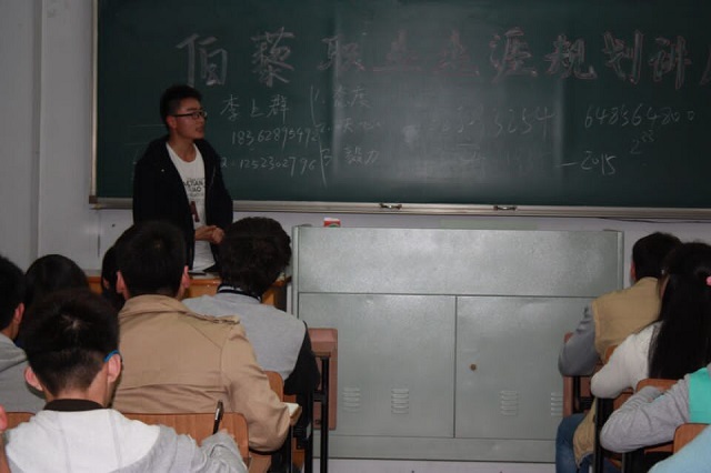 2015年3月29日晚上7:00,江苏科技大学伯藜学社在西校区综合楼110开展了伯藜职业生涯规划讲座。主讲人员有文涯社长、许伟学长和李上群学姐,参加人员为14级陶学子。