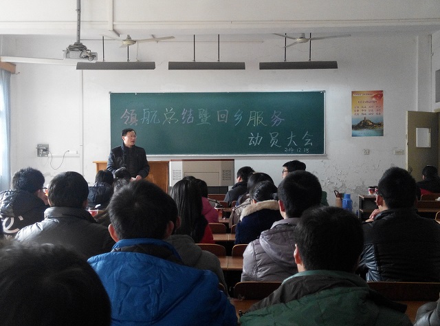 12月28日,江苏科技大学伯藜学社2012级陶学子在东区教学楼3的109教室召开了领航总结暨回乡服务动员大会。会议由社长文涯主持,郭峰老师莅临并作出重要指导。