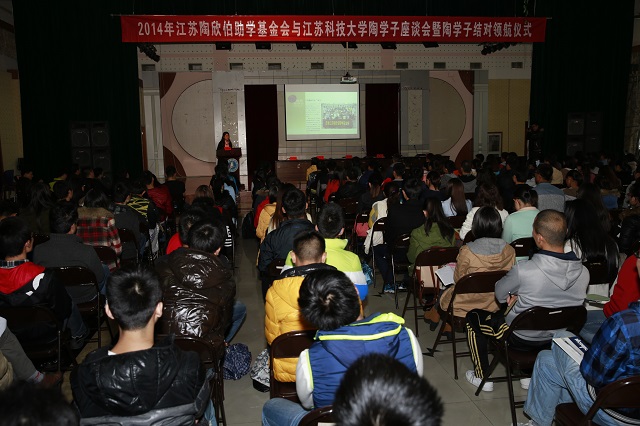 11月25日下午,江苏科技大学240名陶学子齐聚学校多功能厅,隆重举行陶学子结对领航仪式。仪式上,2012级陶学子向2014级陶学子送出自己成长感悟的一封信,2014级陶学子向2012级陶学子递交自己的学业生涯规划书,160名结对陶学子面对面传递梦想和青春的热忱,携手创造美好的明天。