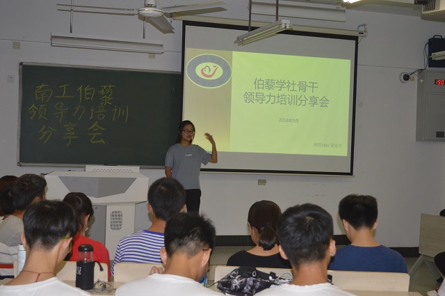 2018年09月21日晚,南京工业大学伯藜学社领导力培训分享会圆满举办。活动面向南工伯藜学社社委会及骨干,其目的是为了通过这次分享会增加陶学子的领导意识和领导能力,促进伯藜学社陶学子与新一任社委会成员的相互交流与了解,加强社委会成员与陶学子的联系,同时增进陶学子之间的交流与沟通。