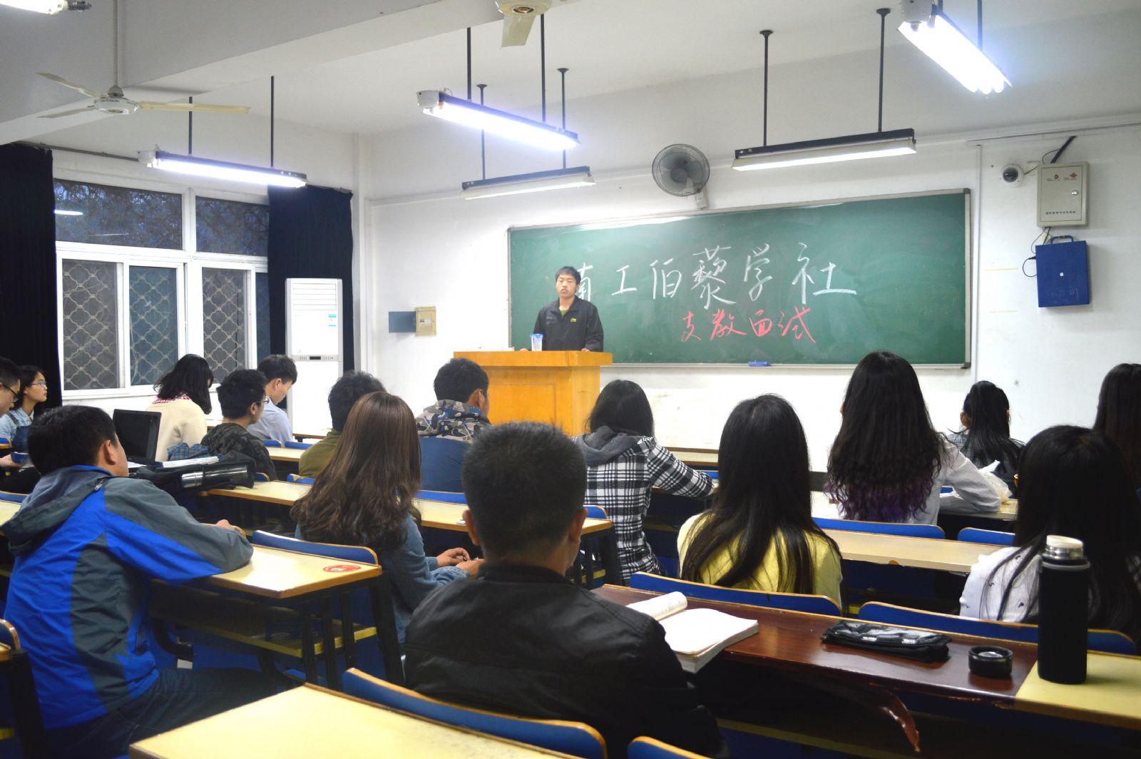 2015年4月16日(周六)晚上6:30,南工伯藜学社在厚学107成功举行了暑期支教面试活动。社委会成员指导学长温健阳、社长宋军锋等人作为面试考官参加活动,共有有三十多名陶学子参加面试。