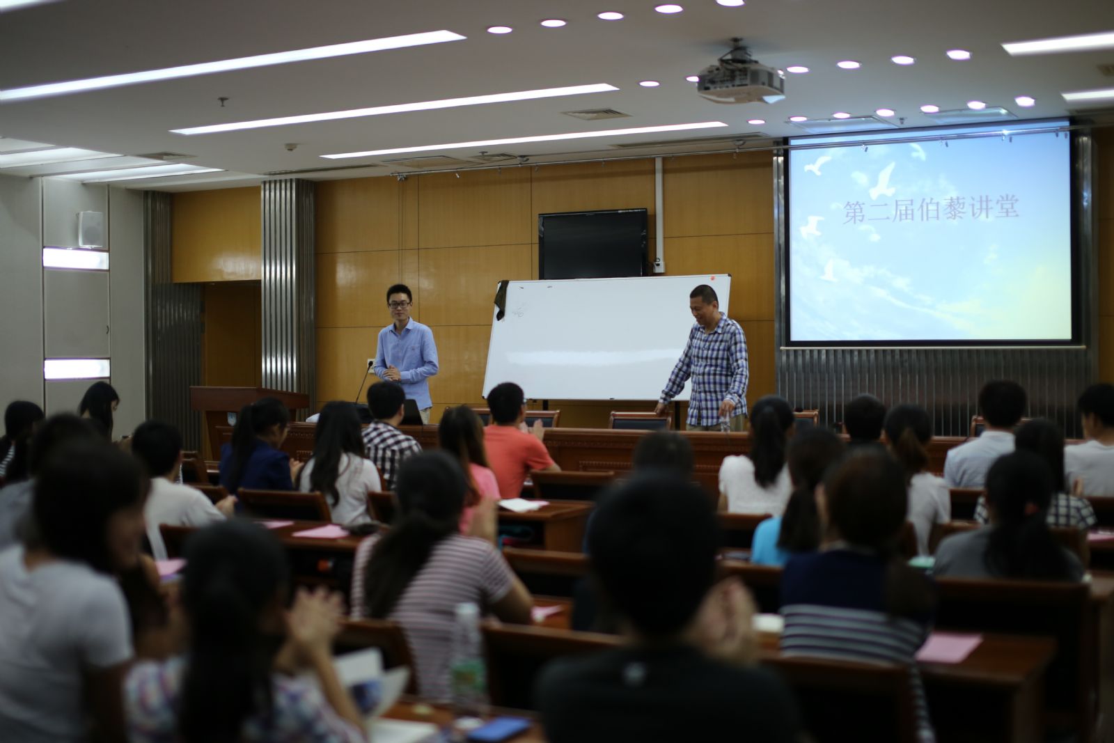 2014年9月16日星期二晚上六点半,在图书馆五楼报告厅举行了第二届伯藜讲堂的讲座,伯藜学社全体社员参加。讲座的主题是打开同世界对话的门,主讲人是《陶欣伯人生小故事》作者,英国伦敦大学学院硕士,博士倪亦斌老师。