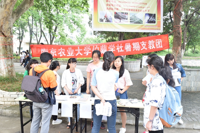 南京农业大学伯藜学社“暑期支教团认购活动”于5月26和27日早上在我校玉兰路举办。此次活动由支教团队长郭奇与团内其他9名成员共同参加。我校伯藜学社暑期赴安徽省蚌埠市徐岗村的支教活动,于今年4月开始正式组队并进行筹划。支教团举办此认购活动旨在号召全校学生为贫困地区的学生奉献爱心,为这些学生认购学习用品。活动认购物品包括华容道、方格本、彩色折纸、魔方等。