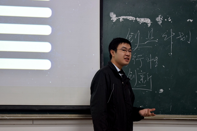 此次创业策划书培训有幸邀请到了南京理工大学的柴志强同学。柴志强同学是江苏陶欣伯助学基金会主办的2015伯藜创业大赛决赛的二等奖——自行车智能防盗系统的获奖者之一。柴同学首先介绍了创业项目确立的注意事项。他讲到,项目的可行性和创新性是项目立项首先应考虑的因素。之后,柴同学结合参加此次创赛的项目讲解了项目策划书撰写的方法。创赛小组成员介绍各自项目的背景及营销方案等后,柴同学结合实际点评了各个项目并提出了改进方案。最后,伯藜学社副社长王世东为大家介绍了创业大赛总的流程。