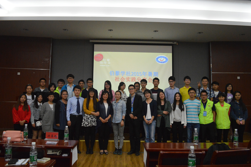 2015年10月23日,南京工业大学伯藜学社于南工大机械学院报告厅举办了伯藜学社暑假社会实践分享大会,并邀请南京中医药大学、南京林业大学、南京特殊教育师范学院、南京晓庄学院、江苏经贸职业技术学院和南京农业大学六所高校陶学子前去观摩与学习,我社七名陶学子代表参加了此次分享活动。