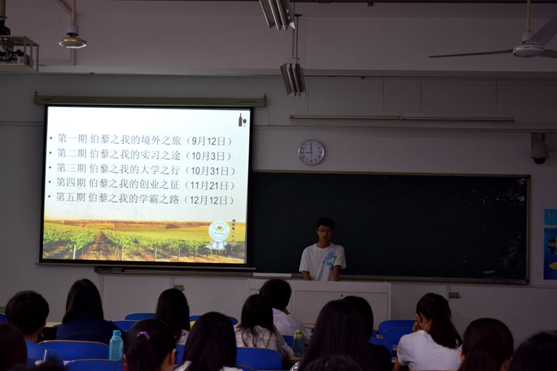 2015年9月12日上午,南京农业大学伯藜学社“伯藜之我的境外之旅”——“创业交流”分享会于教四楼B302成功举办。此次交流会的分享嘉宾分别是赵兴欢、许姣和王世东。南京农业大学伯藜学社社长陈政担任主持。