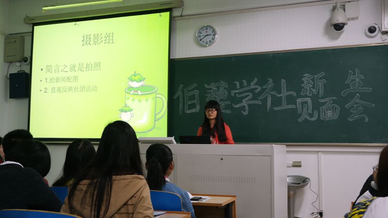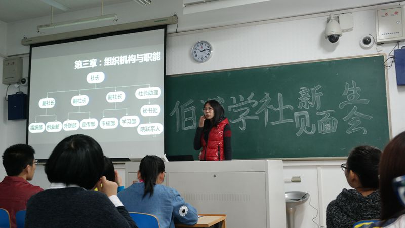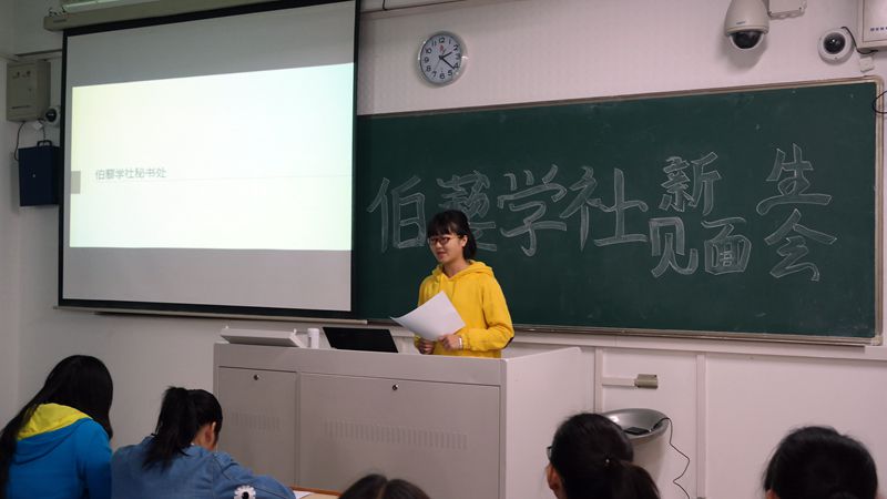 下午2点,在主持人的宣布下,本次新生见面会正式开始。首先,由社长骆美红向大家介绍伯藜学社的宗旨、精神以及社团制度等,她强调伯藜学社是一个大家庭,希望每一位新生能够在这个家庭里展现才华、提升自我。随后,三位副社及社长助理进行自我介绍。