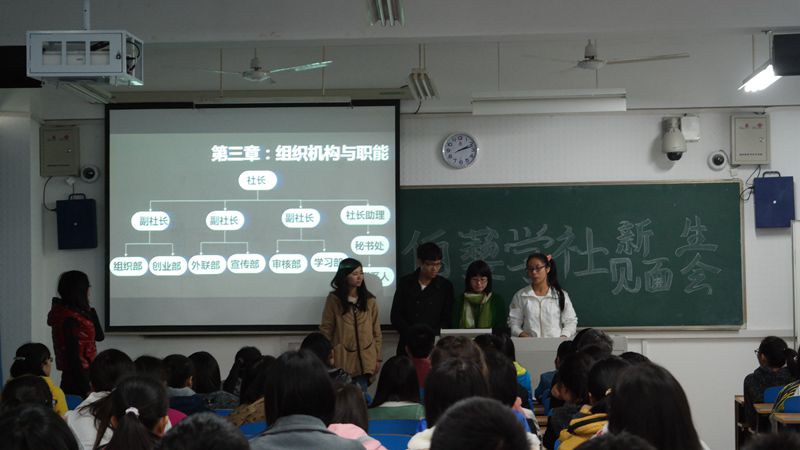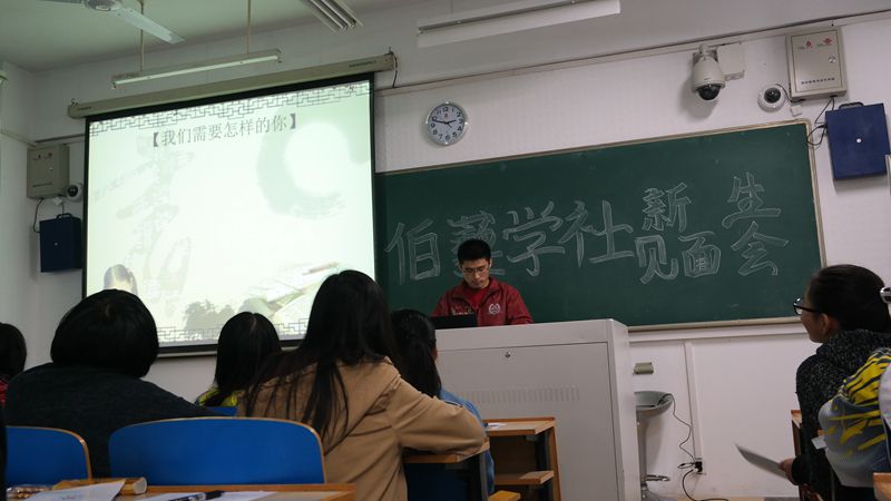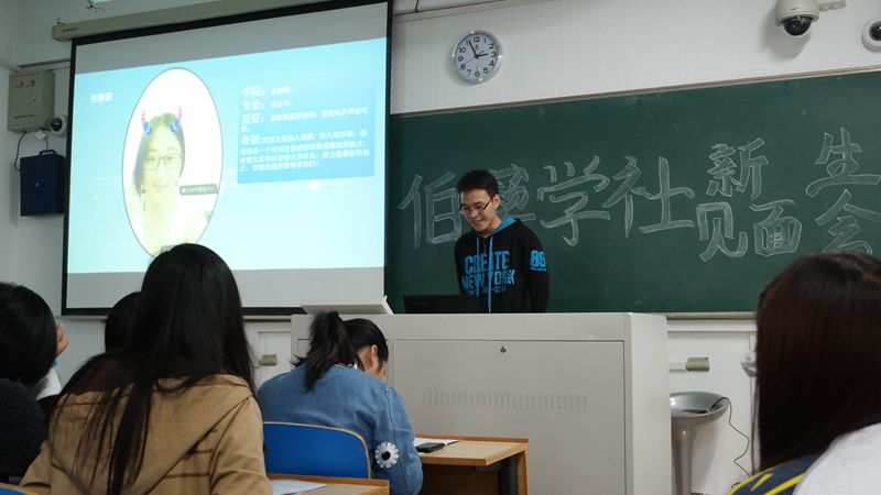 2014年11月9日下午,南京农业大学伯藜学社第四届新生见面会于教学楼b409教室如期举行。出席本次活动的人员有:社长骆美红、我社其他负责人及80名大一新生。副社管毓康担任活动主持人。