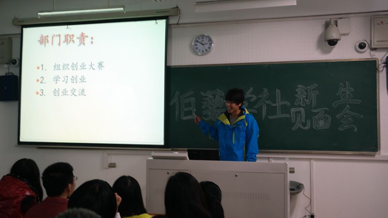 下午3点,招新开始,活动进入高潮。各部门负责人以事先准备好的ppt及演讲稿为基础,就部门成员、部门工作、部门特色等方面向新生做了简单介绍。精美的视频、风格迥异的ppt、简洁清晰的演讲、诙谐的语调,赢得了新生们的阵阵掌声,使他们在感叹学长学姐能力的同时,对各个部门也有了全面了解。接下来,各部门负责人组织招新,新生们手持申请表,积极有序地等候面试,活动也渐入尾声。
